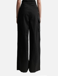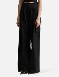 - ANDREĀDAMO - Pants With Double Belt - Made with stretchy cotton fabric - Cut-out belt - High-waisted - Front pleats - Two side pockets - Two side cargo pockets - Two rear welt pockets - Wide leg - Hook and zip fly - Color: Black - Material: 98% Cotton , 2% Elastane - See more Pants and Clothing SIZING - Model wears size S - Model measures: Height 181cm, Chest 33”/84cm, Waist 24”/61cm, Hip 35”/90cm