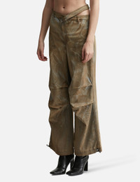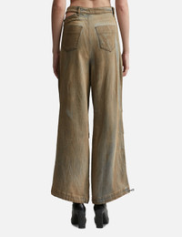 - ANDREĀDAMO - Washed Denim Cargo Pants - Stretchy cotton blend parachute pants - Washed denim - Zip fly with two buttons - Cut out belt - Two side slit pockets - Two rear patch pockets - Wide leg - Drawstring at hem - Made In Italy - Color: Nude - Material: 98% Cotton, 2% Elastan - See more Jeans and Clothing SIZING - Model wears size S - Model measures: Height 181cm, Chest 33”/84cm, Waist 24”/61cm, Hip 35”/90cm