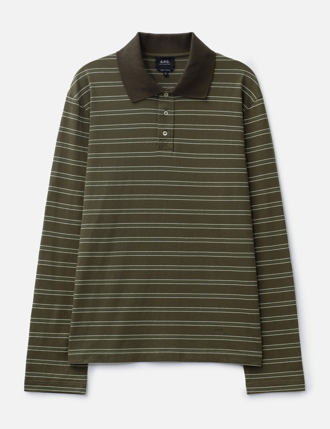 - A.P.C. - Long-Sleeve Striped Polo Shirt - Made of organic cotton - Pointed collar - Button closure - Long sleeves - Allover striped pattern - Made in Portugal - Color: Chestnut Brown - Material: 100% Cotton - See more Polos and Clothing - Model wears size M - Model measures: Height 186cm, Chest 34”/86cm, Waist 28”/71cm, Hip 36”/91cm - Model wears size S - Model measures: Height 180cm, Chest 28.3’’/72cm, Waist 22’’/56cm, Hip 35’’/89cm - Vendor Code: COHLV-H26519