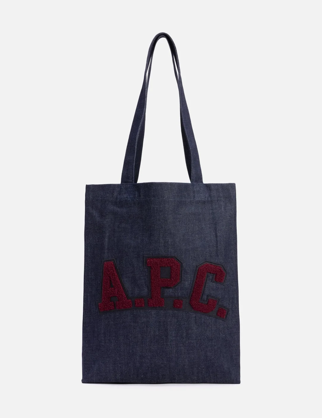 - A.P.C. - Lou Patch Tote Bag - Made in Japanese denim - Two large handles - Shoulder or by hand carry - 'A.P.C.' patch on front - Interior pocket - Tone-on-tone topstitching - Color: Indigo - Material: 100% Cotton - See more Tote Bags, Bags and Accessories - Height: 38cm - Width: 31cm - Depth: 9cm - Strap Length: 28cm - Vendor Code: COHIZ-M67059