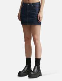 - A.P.C. - Mini-Skirt - Japanese raw denim - High waist - Mid-thigh length - Zip fly - 3-pocket style - Contrast stitching - Logo engraved button - Slightly flared hem - Color: Indigo - Material: 100% Cotton - See more Skirts and Clothing SIZING - Model wears size 36 - Model measures: Height 179cm, Chest 33”/83cm, Waist 24.8”/63cm,Hip 35’’/89cm