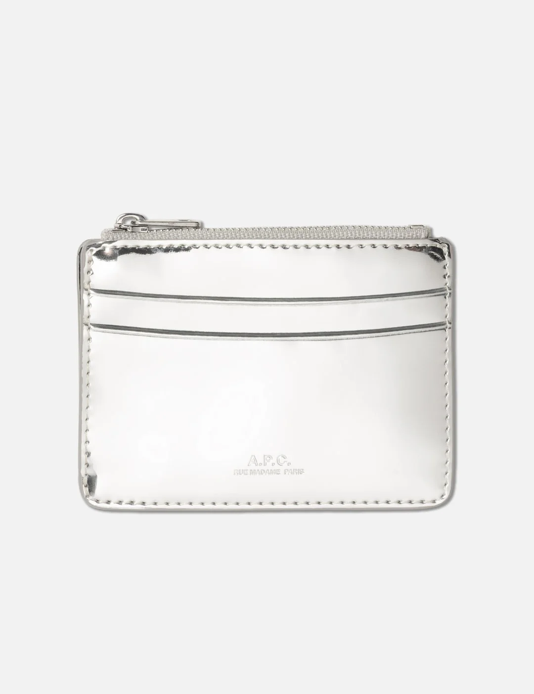 - A.P.C. - Paris Cardholder - Made with metallised silvertone canvas - Two card slots on one side and one on the other - One zip pocket in the centre - Embossed silvertone "A.P.C. Rue Madame Paris" logo - Color: Silver - Material: 59% polyurethane, 41% polyester - See more Card Holders, Wallets and Accessories - Height: 7.5cm - Width: 10cm - Vendor Code: PUACB-F63670