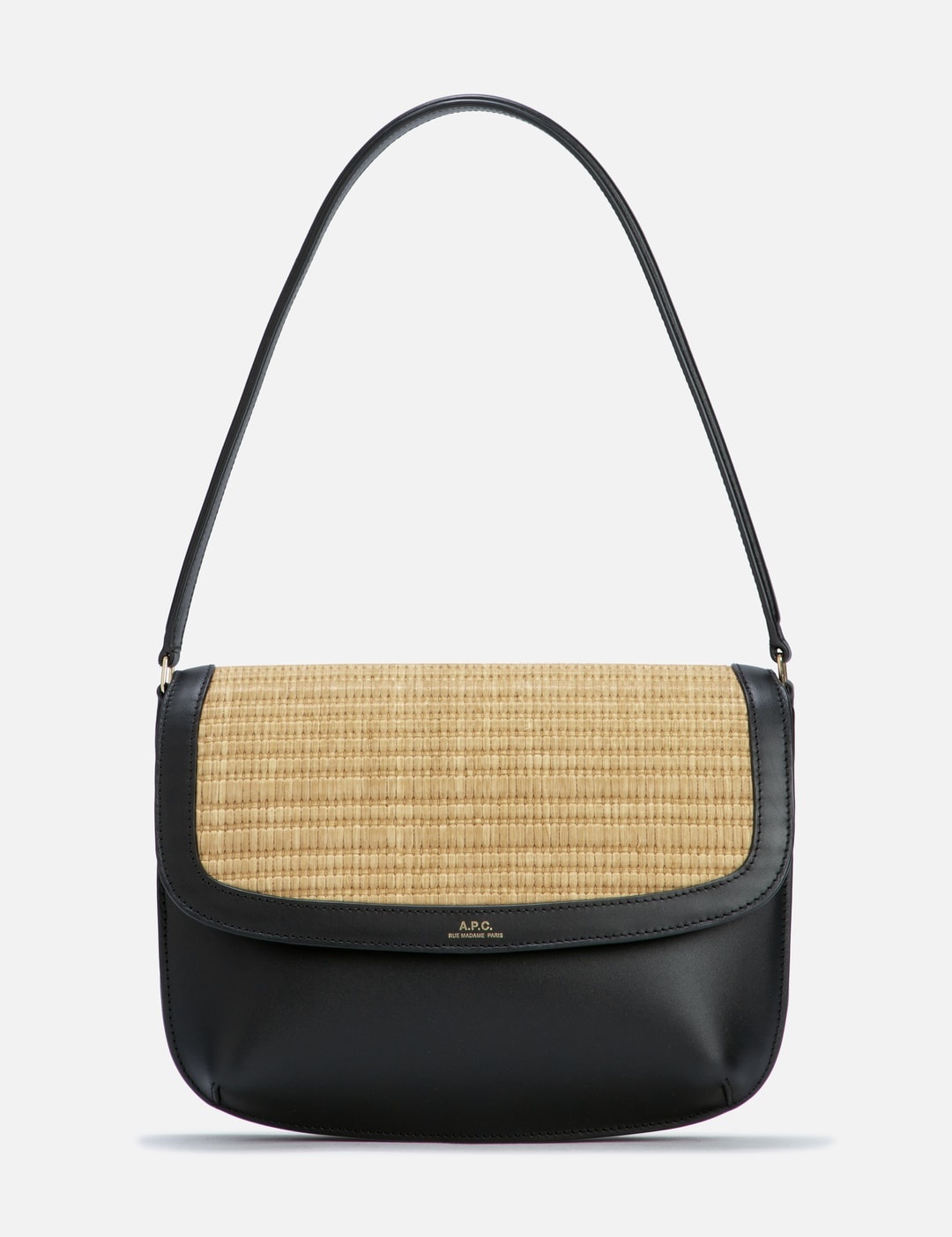 - A.P.C. - Sarah Shoulder Bag - Smooth leather outer - Flap closure with magnetic fastening - Tweed stitch flap panel - Top handle for shoulder carry - Rounded, convex corners - Two compartments - Single interior pocket - Embossed goldtone logo at front - Fully lined - Color: Black - Material: Leather, Cotton - See more Bags and Accessories SIZING Approximate dimensions: - Height: 14cm - Width: 22cm - Depth: 6cm - Strap Length: 19.5cm