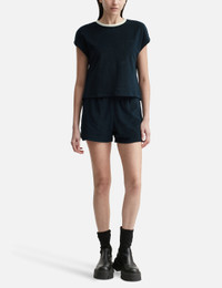 - A.P.C. - Shorts Elody - Made of organic cotton - Elastic waistband - Color: Dark Navy - Material: 100% Cotton - See more Shorts and Clothing SIZING - Model wears size S - Model measures: Height 175cm, Chest 32’/81cm, Waist 24.5’’/61.2cm, Hip 35’’/88.9cm