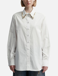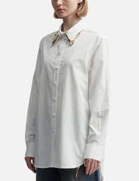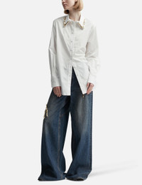 - Area - Claw Collar Button Down - Cotton poplin fabric - Shirt collar with claw embellishment - Tonal button closure - Buttoned cuffs - Curved hem - Color: White - Material: 100% Cotton - See more Shirts and Clothing SIZING - Model wears size S - Model measures: Height 179cm, Chest 32”/81cm, Waist 23’’/58.42cm, Hip 35’’/88.9cm
