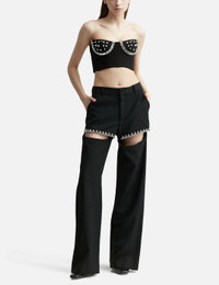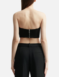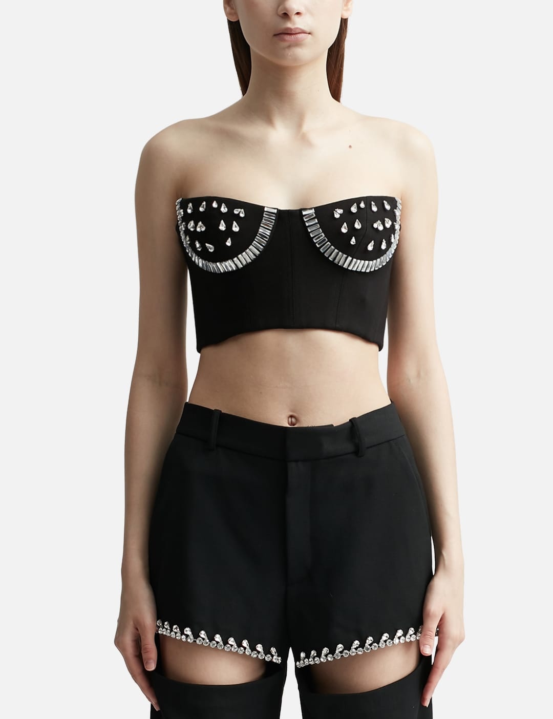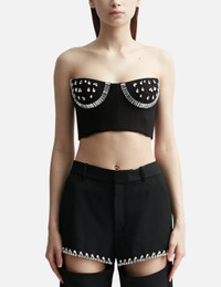 - Area - Crystal Watermelon Cup Bustier - Fitted - Strapless - Wired cup - Reinforced bound - Crystal embellishment on the front - Rear zip closure - Cropped hem - Color: Black - Material: 67% Rayon, 28% Nylon, 5% Spandex - See more Tops and Clothing SIZING - Model wears size S - Model measures: Height 176cm, Chest 32”/81cm, Waist 23”/59cm,Hip 35”/90cm