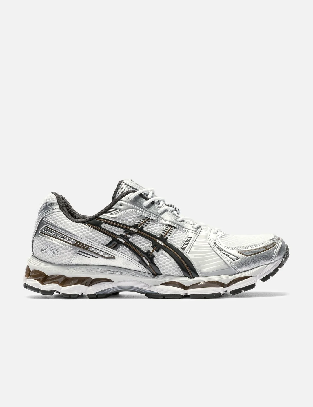 - Asics - GEL-Kayano 12.1 - Mesh, leather, and synthetic upper - Lace-up closure - Padded tongue with 'KAYANO' logo patch in Kanji - GEL and FLUIDRIDE technology cushioning - Rubber outsole - Color: White/ Graphite Grey - Material: Mesh, Synthetic, Rubber - See more Sneakers and Shoes - Vendor Code: 1203A759-104