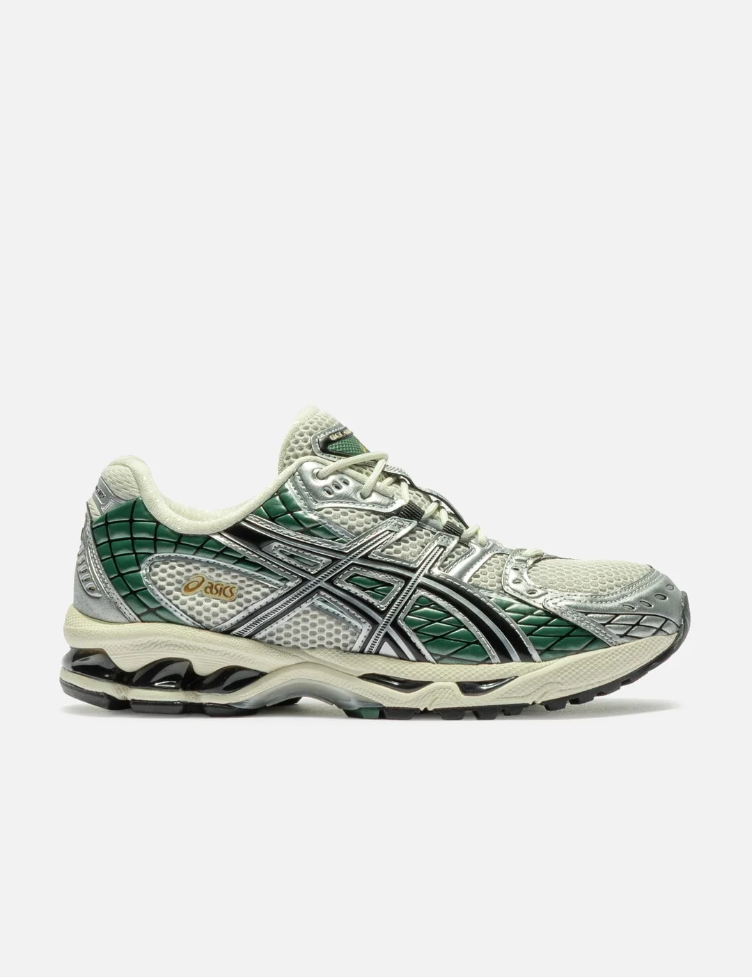 - Asics - GEL-Nimbus 10.1 - Asymmetric design - Mesh and synthetic upper - Lace-up closure - Padded collar - EVA foam cushioning - Rubber outsole - Color: Cream / Grove - Material: Mesh, Synthetic, Rubber - See more Sneakers and Shoes - Vendor Code: 1203A761-101