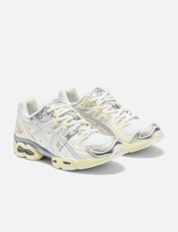 - Asics - Gel-Nimbus 9 - Mesh and synthetic upper - Lace-up closure - GEL cushioning - Rubber outsole - Color: White/Pure Silver - Material: Mesh, Synthetic, Rubber - See more Sneakers and Shoes
