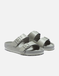 - Birkenstock - Arizona Exquisite - Premium smooth leather upper - Two adjustable straps with metal pin buckles - Anatomically shaped cork-latex footbed - Exquisite leather footbed lining - EVA sole - Made in Germany - Color: Mineral Gray - Material: Leather; Coak; EVA - See more Sandals and Shoes