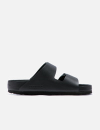 - Birkenstock - Arizona Exquisite - Premium smooth leather upper - Two adjustable straps with metal pin buckles - Anatomically shaped cork-latex footbed - Exquisite leather footbed lining - EVA sole - Made in Germany - Color: Black - Material: Leather; Coak; EVA - See more Sandals and Shoes