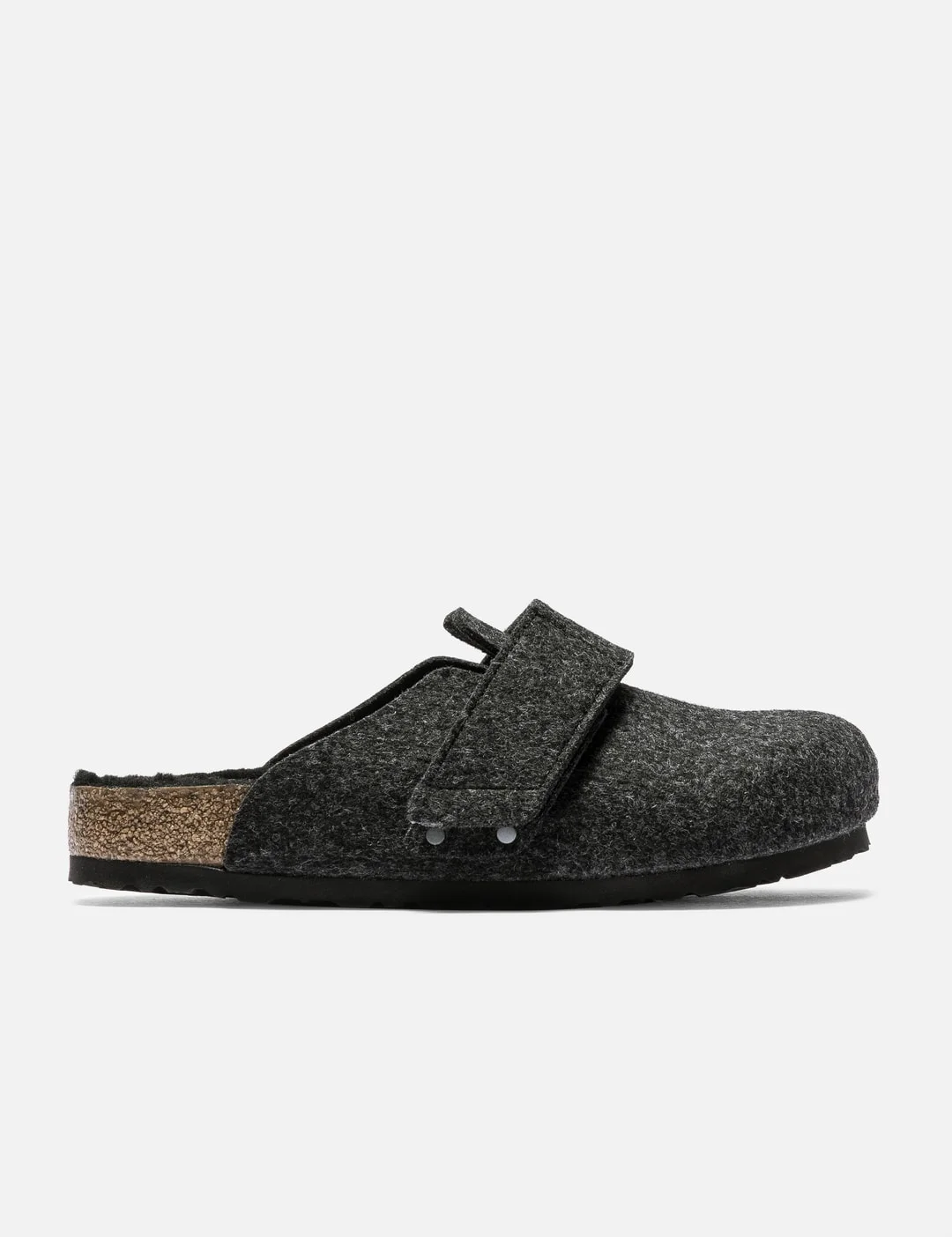 - Birkenstock - Loma Shearling - Adjustable wool felt upper - Strap with adjustable metal pin buckle - Anatomically shaped cork-latex footbed - Shearling footbed lining - EVA sole - Made in Germany - Color: Anthracite - Material: Wool, Shearling , Cork, EVA - See more Sandals and Shoes - Vendor Code: 1030752