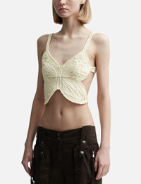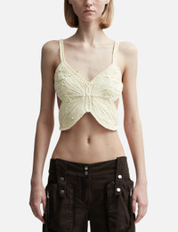 - Blumarine - Cropped Top with Embroidery Butterfly - Sleeveless - Cropped cut - Slim fit - Cotton and polyamide rib knit construction - Shoulder straps and double rear straps - Cornely embroidery with butterfly wings - Color: Butter - Country Of Origin: IT - Material: 75% Cotton, 25% Polyamide - See more Tops and Clothing SIZING - Model wears size S - Model measures: Height 179cm, Chest 32”/81cm, Waist 23’’/58.42cm, Hip 35’’/88.9cm