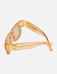 - Bottega Veneta - Hinge Acetate Square Sunglasses - Square acetate frame - Bio-nylon orange lenses - Metal hinge details at the sides - Integrated nose pad - Branding engraved on the temples - Transparent construction - Color: Orange/Brown - Material: Acetate - See more Sunglasses, Eyewear and Accessories SIZING Approximate dimensions: - Frame Height: 4.8cm - Frame Width: 14.5cm - 49 ☐ 23 - 140