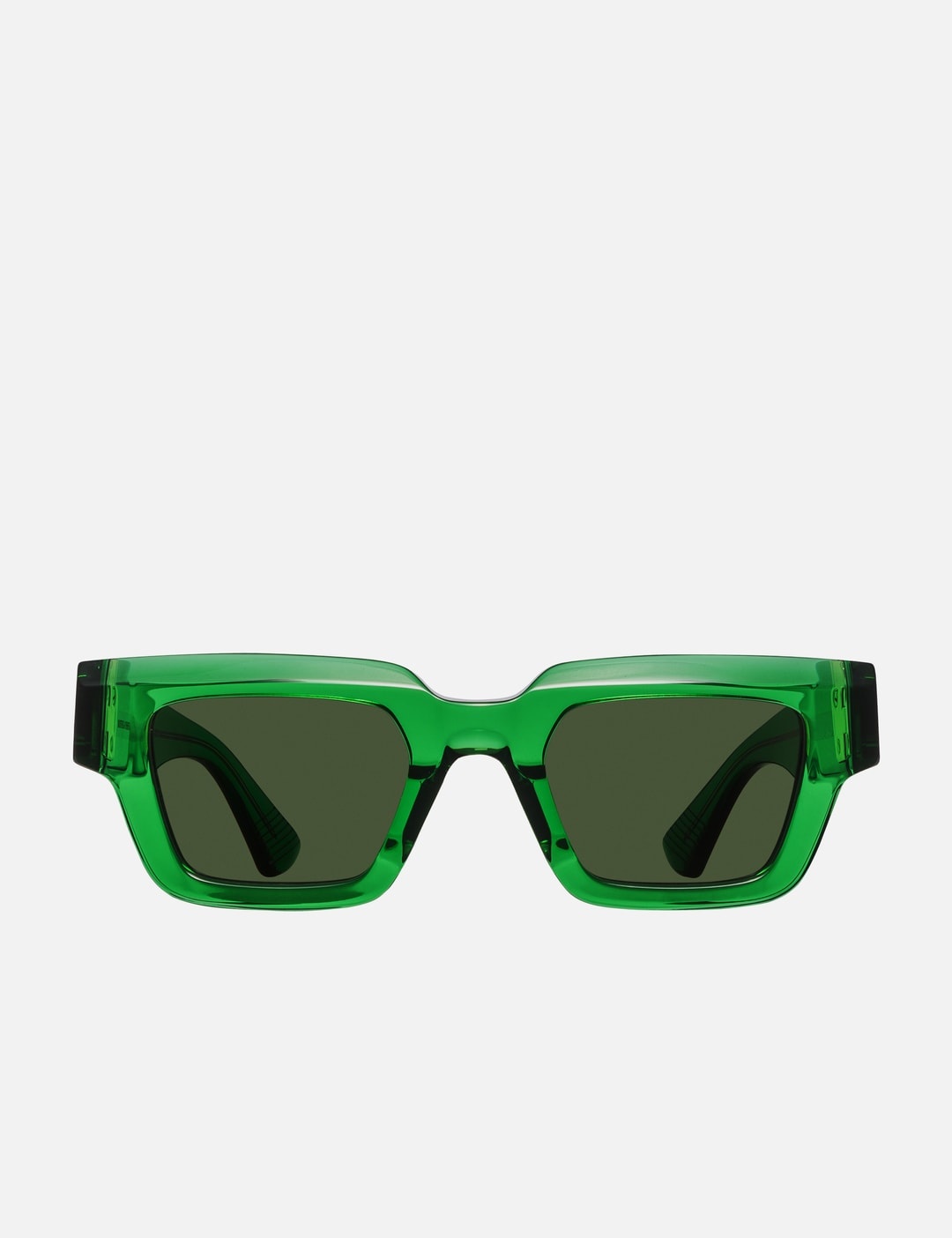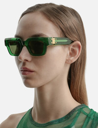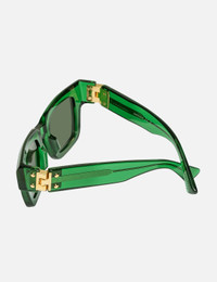 - Bottega Veneta - Hinge Acetate Square Sunglasses - Square green acetate frame - Bio-nylon tonal lenses - Metal hinge details at the sides - Integrated nose pad - Branding engraved on the temples - Transparent construction - Color: Green - Material: Acetate - See more Eyewear and Accessories SIZING Approximate dimensions: - Frame Height: 4.8cm - Frame Width: 14.5cm - 49 ☐ 23 - 140