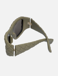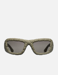 - Bottega Veneta - Intrecciato Rectangular Sunglasses - Bio nylon lenses - Intrecciato pattern on front - Intrecciato pattern on temples - Made in: Japan - Color: Green/Brown - Material: Acetate - See more Sunglasses, Eyewear and Accessories SIZING Approximate dimensions: - Frame Height: 5cm - Frame Width: 14cm - 56 19 - 130