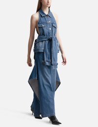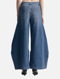 - Burberry - Denim Trousers - Relaxed fit - Zip fly - Two welt side pockets - Two patch pockets at the rear - Flared details at the sides - Hidden adjustable strap at the hem - Branding embroidery on the rear pocket - Wide leg - Color: Deep Slate Blue - Material: 98% Cotton, 2% Elastane - See more Jeans and Clothing
