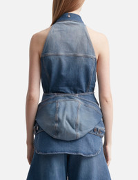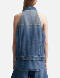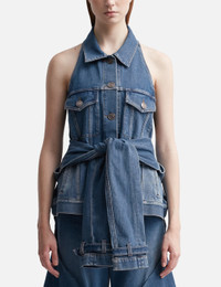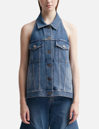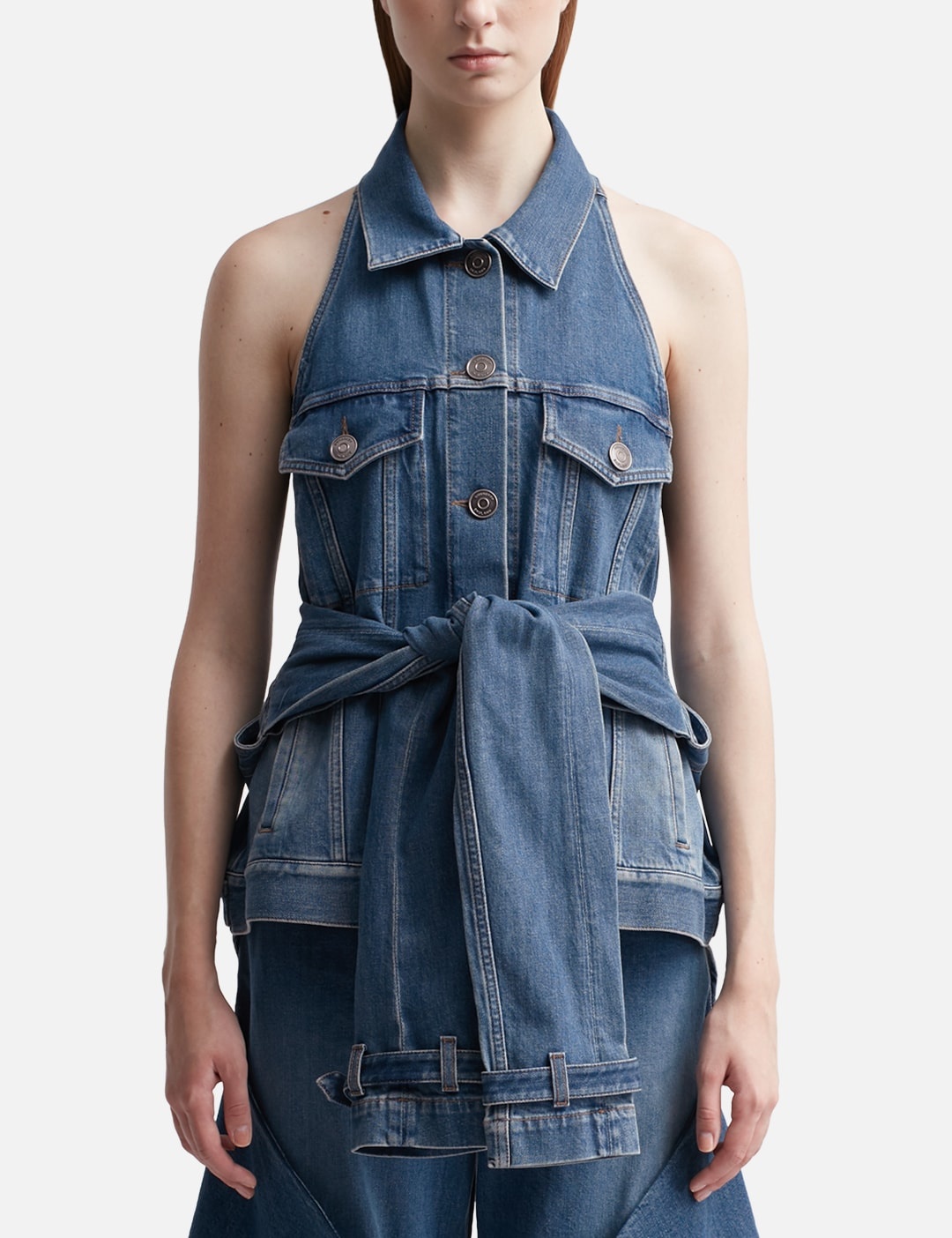 - Burberry - Denim Vest - Relaxed fit - Spread collar - Button closure - Sleeveless - Detachable decorative long sleeves and hood - Two flap buttoned pockets on the chest - Two welt side pockets - Panelled curved hem at the rear - Color: Deep Slate Blue - Material: 98% Cotton, 2% Elastane - See more Vests and Clothing