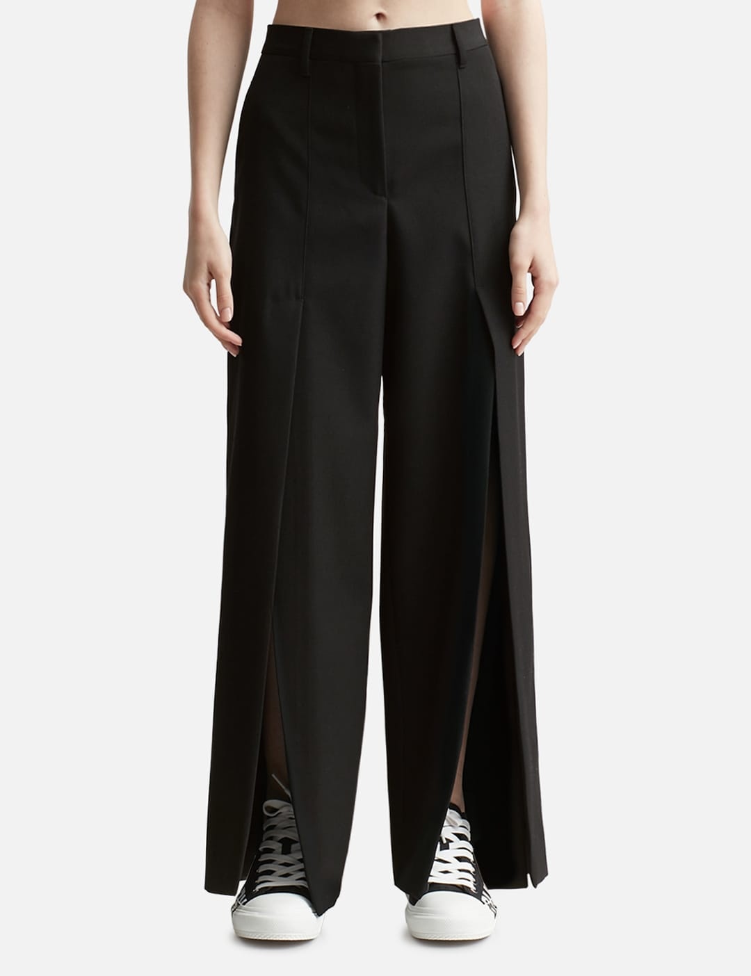 Split Detail Wool Ramie Wide-leg Trousers