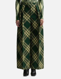 - Burberry - Pleated Check Wool Trousers - Made from wool twill - Woven with an ombré check pattern - Regular fit - Wide legs - Front pleat detailing - Button, hook, and zip fly closure - Side slip pocket - Back welt pocket - Color: Primrose - Material: 100% Wool - See more Pants and Clothing SIZING - Model wears size 26 - Model measures: Height 181cm, Chest 33”/84cm, Waist 24”/61cm, Hip 35”/90cm