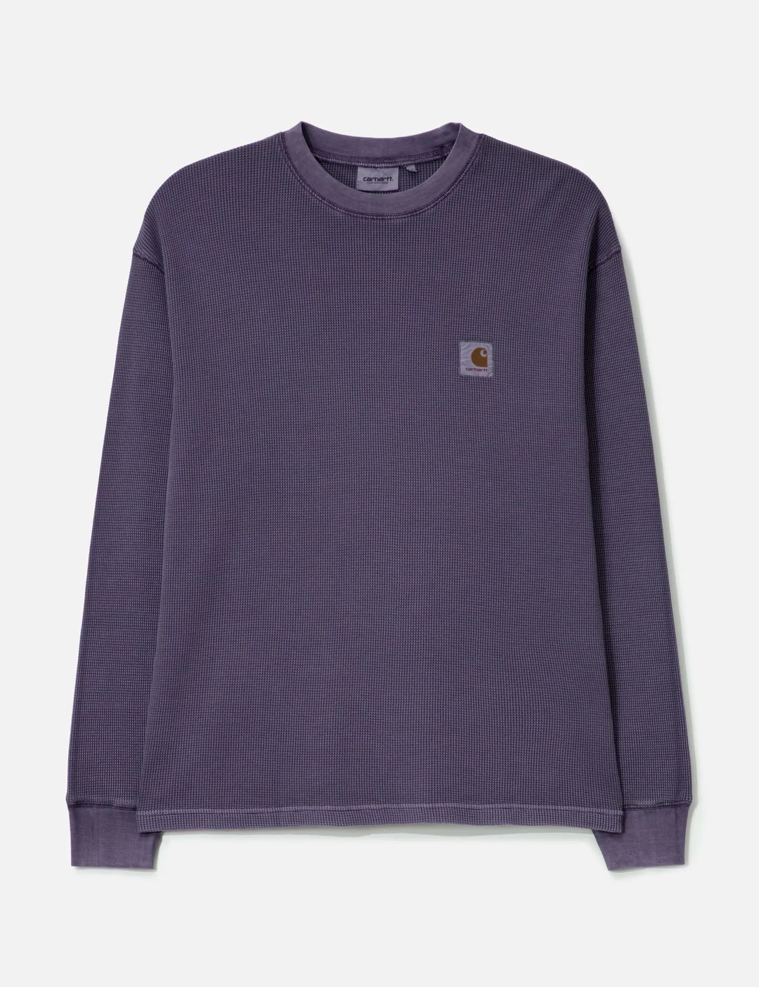 - Carhartt Work In Progress - Long Sleeve Vista Waffle T-Shirt - Heavyweight cotton waffle exterior - Garment-dyed - Loose fit - Crewneck - Dropped shoulders - Long sleeves - Woven logo label on the chest - Ribbed neck and cuffs - Straight hem - Color: Lokers Garment Dyed - Material: 100% Cotton - See more LS T-Shirts, T-Shirts and Clothing - Model wears size M - Model measures: Height 186cm, Chest 34”/86cm, Waist 28”/71cm, Hip 36”/91cm - Vendor Code: I035304