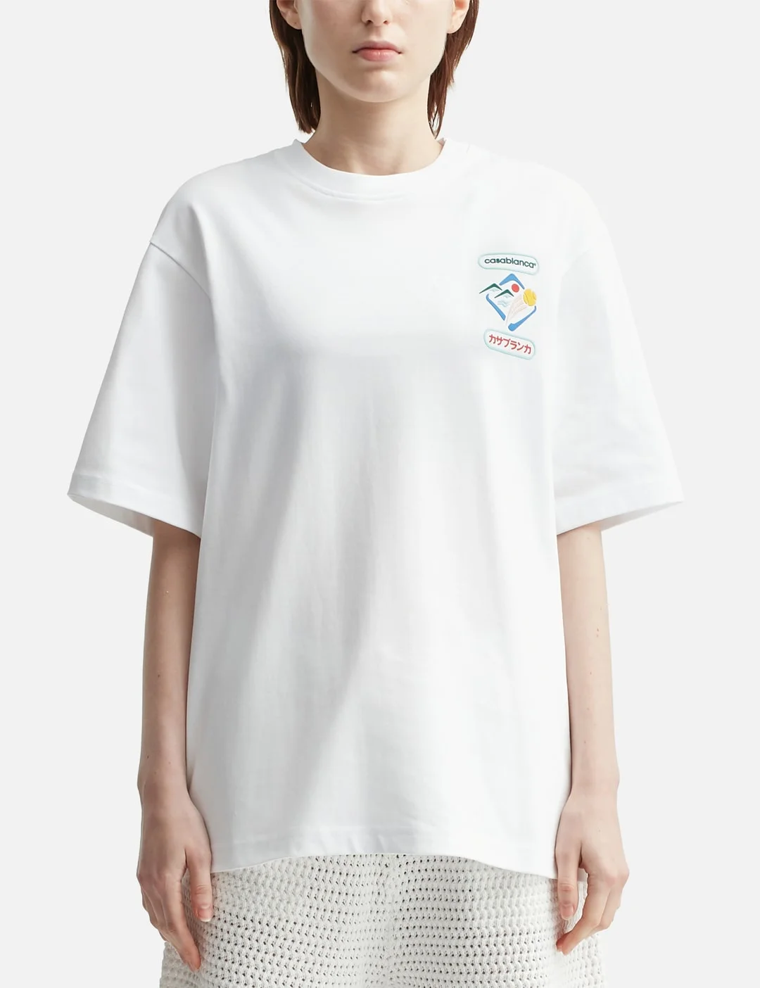 - Casablanca - Montagne Sportif T-Shirt - Made of organic cotton - Oversized fit - Ribbed crewneck - Short sleeve - Graphic print at front - Made in Portugal - Color: White - Material: 100% Orangic Cotton - See more SS T-Shirts, T-Shirts and Clothing - Model wears size M - Model measures: Height 186cm, Chest 34”/86cm, Waist 28”/71cm, Hip 36”/91cm - Vendor Code: MPF25-JTS-044-04