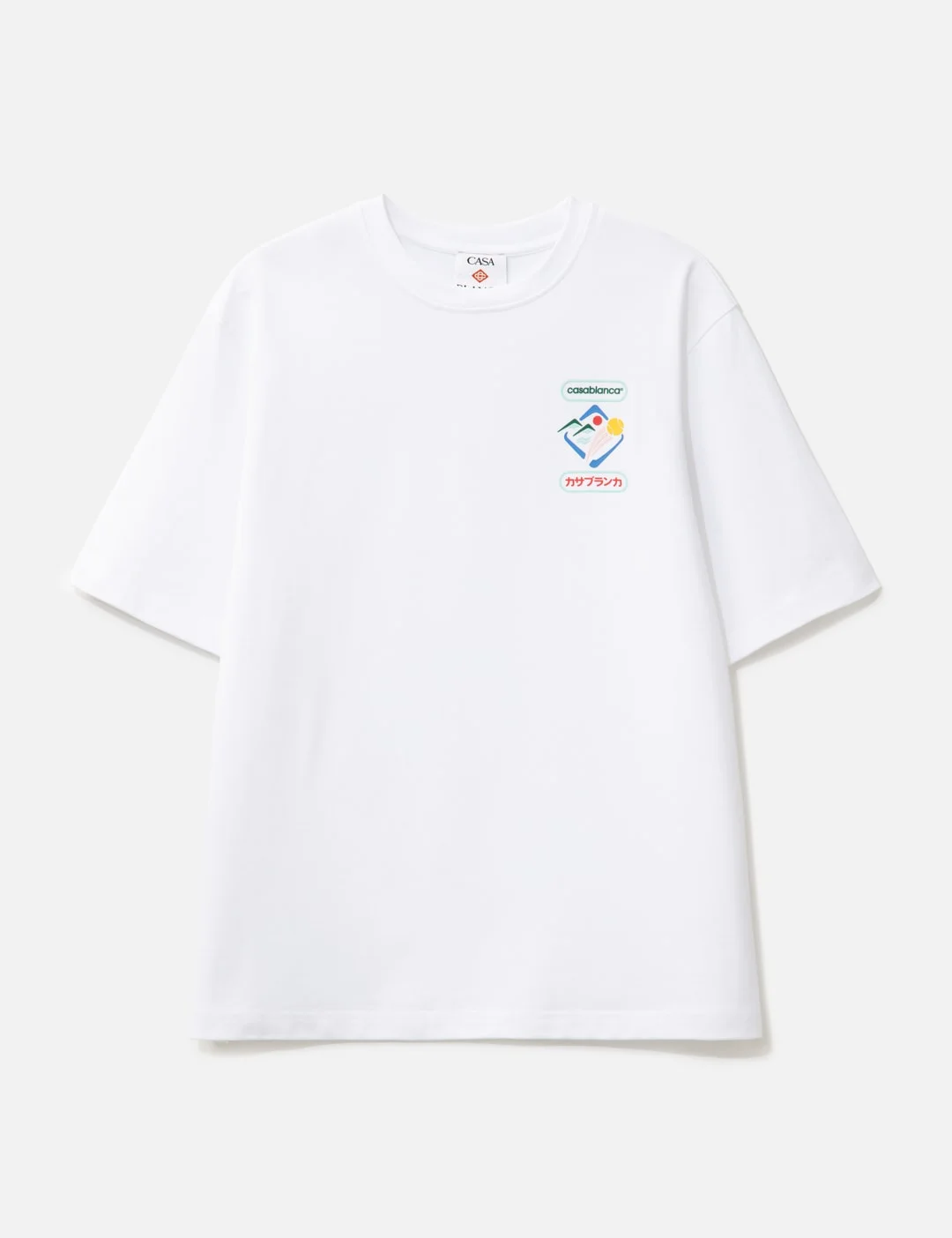 - Casablanca - Montagne Sportif T-Shirt - Made of organic cotton - Oversized fit - Ribbed crewneck - Short sleeve - Graphic print at front - Made in Portugal - Color: White - Material: 100% Orangic Cotton - See more SS T-Shirts, T-Shirts and Clothing - Model wears size M - Model measures: Height 186cm, Chest 34”/86cm, Waist 28”/71cm, Hip 36”/91cm - Vendor Code: MPF25-JTS-044-04