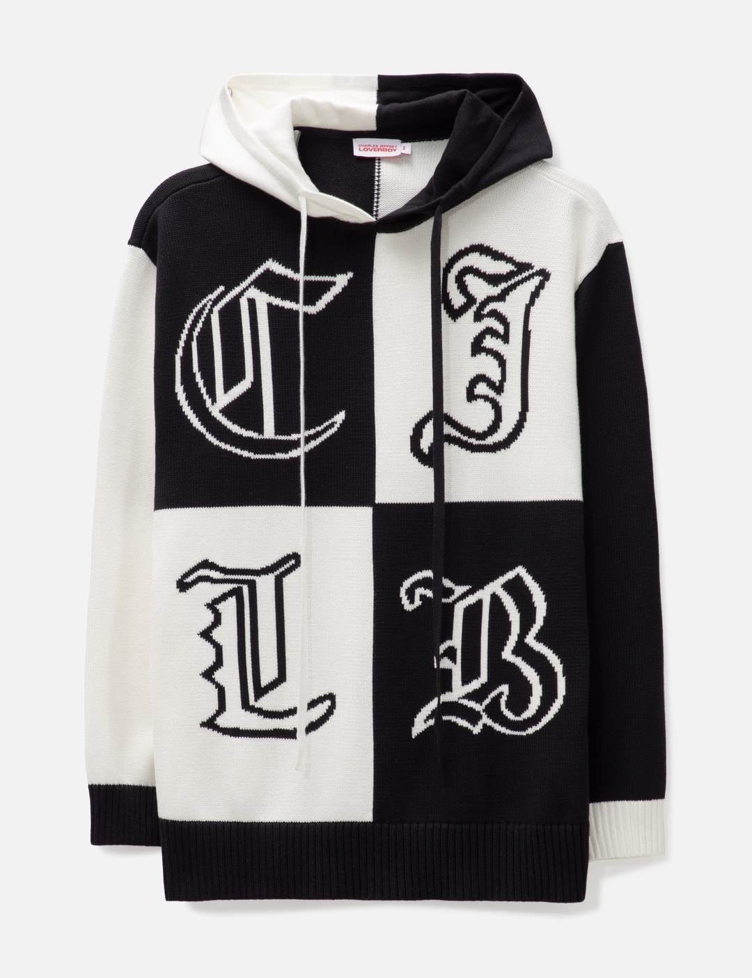 - Charles Jeffrey Loverboy - Heraldry Hoodie - Cotton knit fabric - Drawcord hood - Woven graphics at front - Ribbed trims - Unlined - Color: White/Black - Material: 100% Cotton - See more Hoodies and Clothing SIZING - Model wears size M - Model measures: Height 187cm, Chest 37”/96.5cm, Waist 30”/76.2cm, Hip 37”/94cm