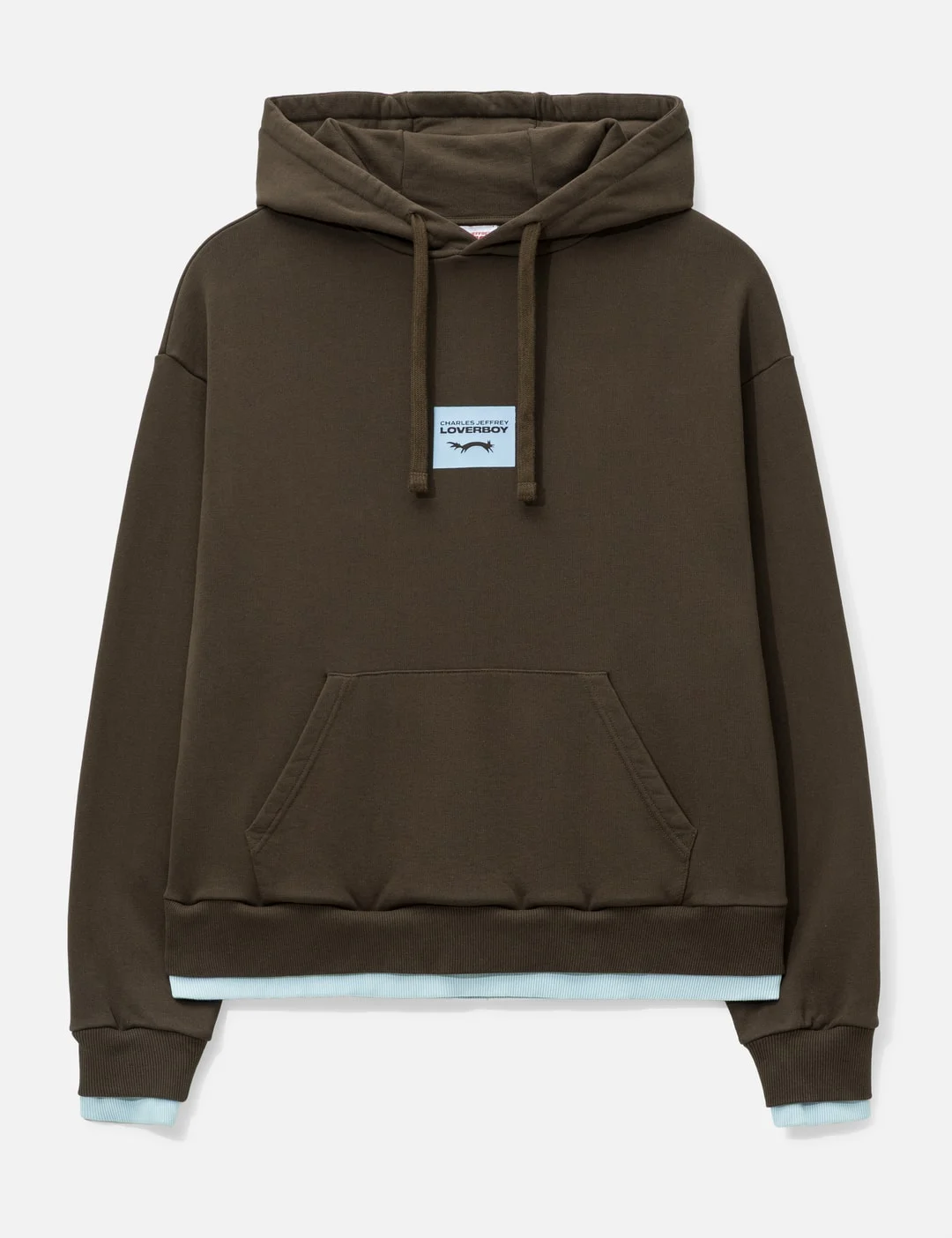 - Charles Jeffrey Loverboy - Rabbit Ears Hoody - Made of premium organic loopback jersey - Loose, oversized fit - Drawcord hood - Giant floppy ears at the hood - Square brand patch on chest - Front kangaroo pocket - Ribbed hem and cuff - Color: Brown - Material: 100% Organic Cotton - See more Hoodies and Clothing - Vendor Code: 062100101