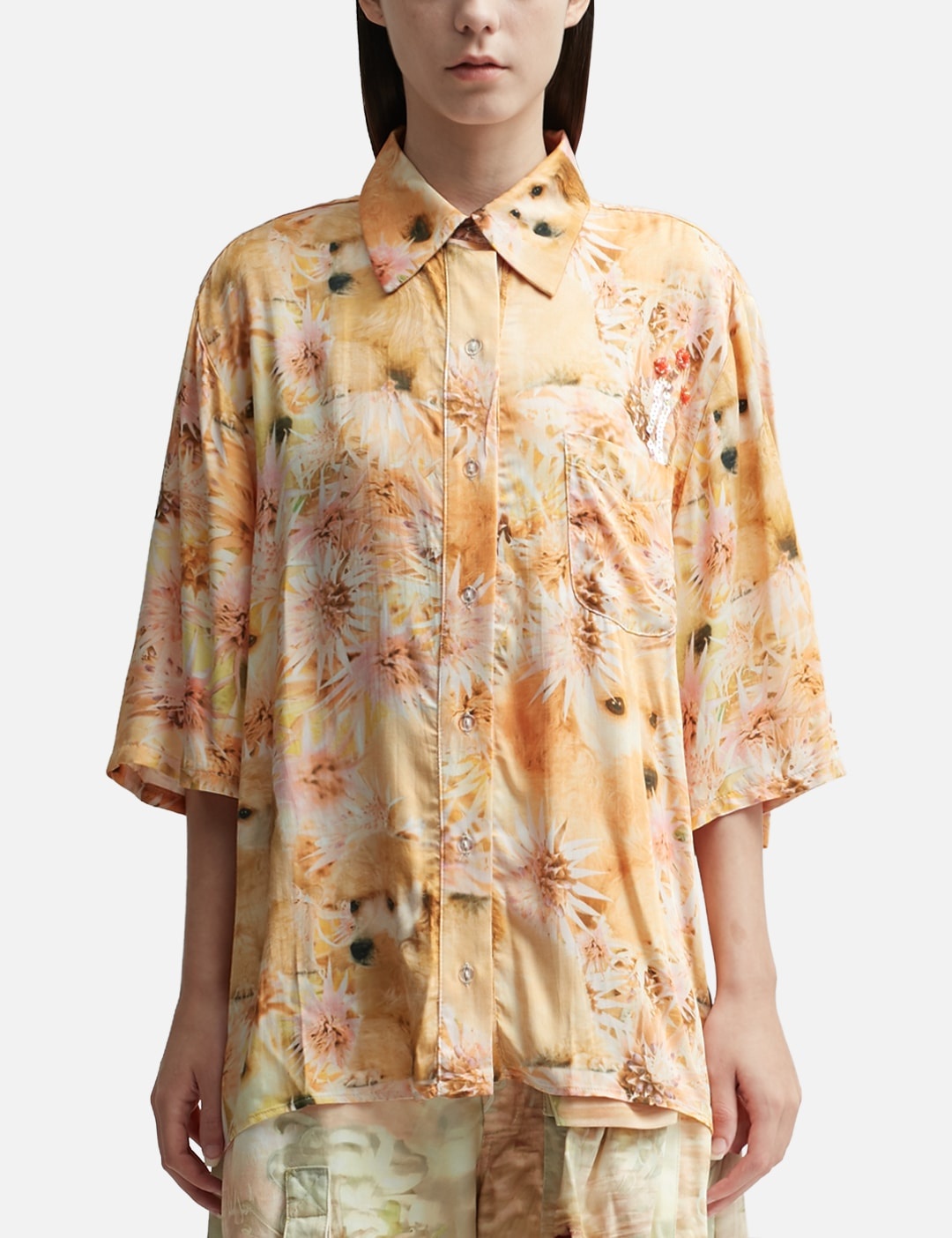 - Collina Strada - Spikey Puppy Sequin Market Button-Up Shirt - Lightweight rose silk exterior - Spread collar - Button closure - Chest pocket with sequin flower details above - Straight hem - Color: Spikey Puppy - Material: 100% Rose Silk - See more Shirts and Clothing SIZING - Model wears size S - Model measures: Height 176cm, Chest 32”/81cm, Waist 23”58cm, Hip 34”/86cm