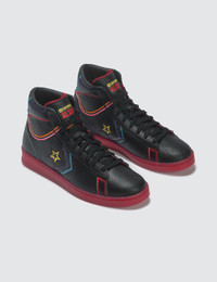- Converse - Pro Leather Hi - High top sneaker - Leather upper - Contrasting stitching - Logo at the back heel - Iconic one star at the sidewalls - Embroidered branding tongue - Lace closure - Rubber outsole in red - Color: Black / Multicolor - See more Sneakers - See more Sneakers and Shoes