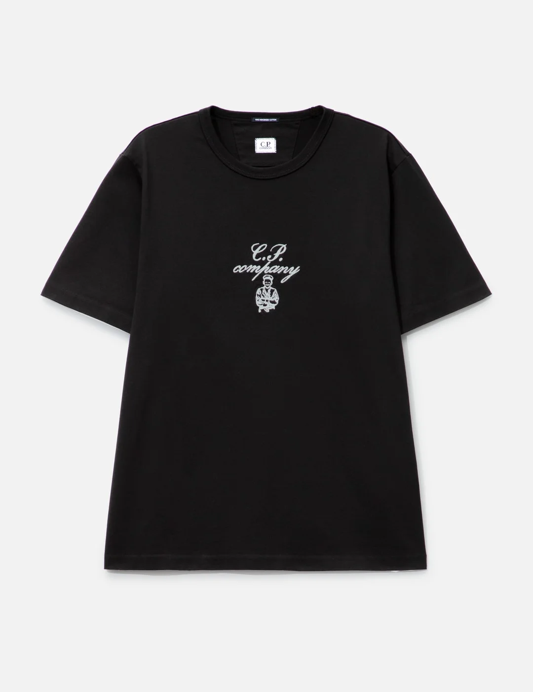 - C.P. Company - 30/2 Mercerized Jersey Twisted Embroidery T-Shirt - Mercerized cotton fabric - Embroidered logo at front - Straight hem - Color: Black - Material: 100% Cotton - See more SS T-Shirts, T-Shirts and Clothing - Model wears size L - Model measures: Height 186cm, Chest 34”/86cm, Waist 28”/71cm, Hip 36”/91cm - Vendor Code: 18CMTS109A-110301W
