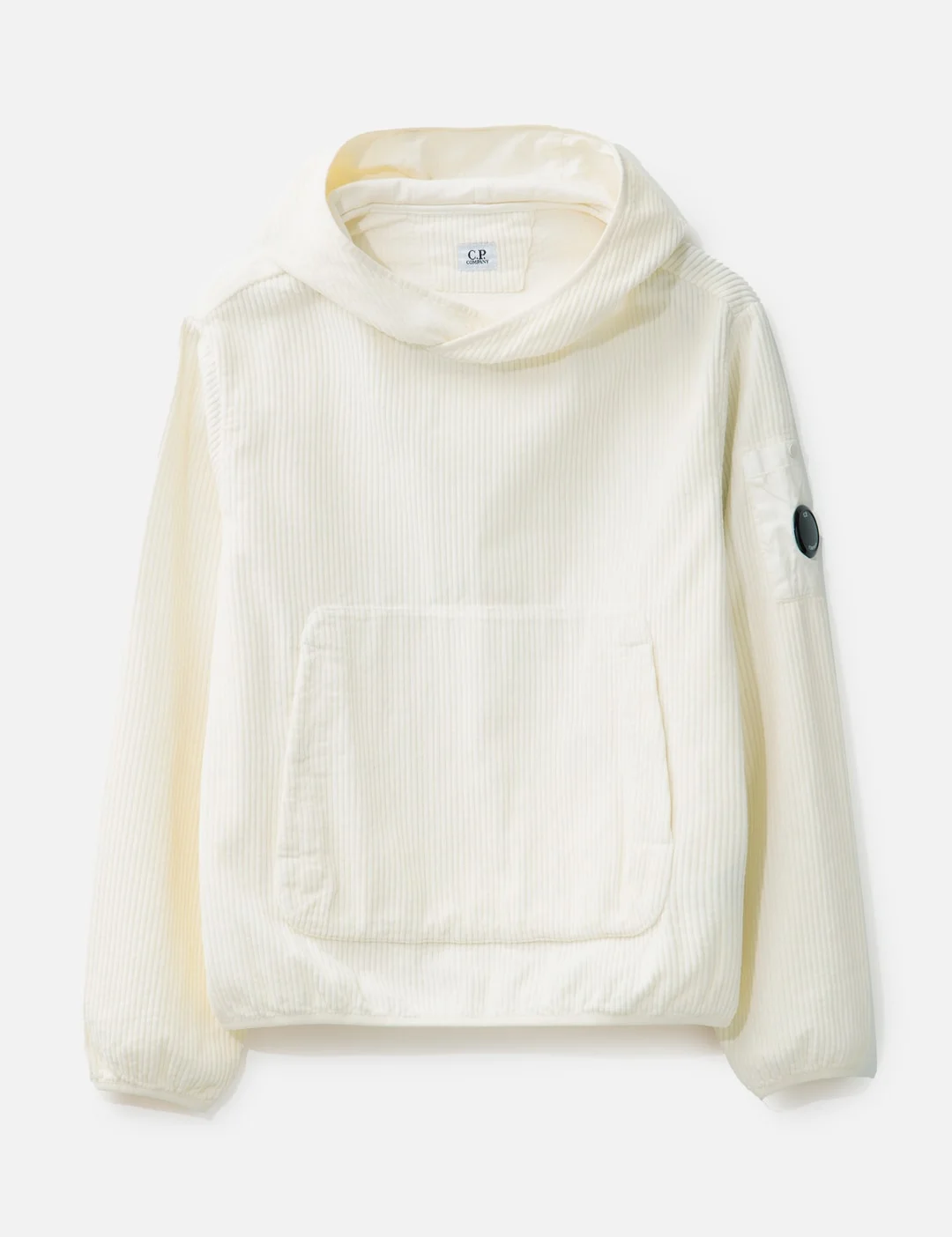 - C.P. Company - Corduroy 350 Lens Hooded Sweatshirt - Made of 350 Stripes Corduroy - Regular fit - Garment-dyed - Fixed hood - Long sleeves - Snap pocket on the left sleeve - Iconic Lens detail - Snap kangaroo pocket - Elasticated cuffs and hem - Color: Pistachio Shell / Beige - Material: 100% Cotton - See more Hoodies and Clothing - Model wears size M - Model measures: Height 186cm, Chest 34”/86cm, Waist 28”/71cm, Hip 36”/91cm - Vendor Code: 19CMSS216A-110472G