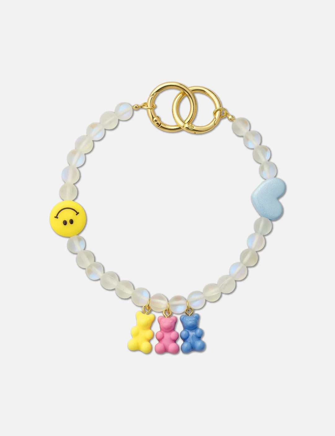 - Crystal Haze - Bear With Me Bag Chain - Gold-plated brass clasps - Decorated with resin pearls, hearts and a smiling face - Bear trio at center - Color: Multicolor - Material: Brass, Enamel, Resin - See more Keychains, Jewelry and Accessories - Max. Length: 29.5cm - Vendor Code: BEAR WITH ME BAG CHAIN