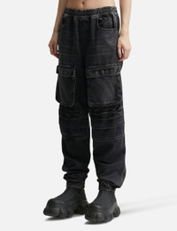 - Diesel - D-Mirt 0hlaa Cargo Pants - Non-stretch washed denim fabric - Elasticated waistband - Two side pockets - Four cargo pockets - Cinched ankles - Color: Black - Material: 100% Cotton - See more Pants and Clothing SIZING - Model wears size 26 - Model measures: Height 179cm, Chest 33”/83cm, Waist 24.8”/63cm,Hip 35’’/89cm