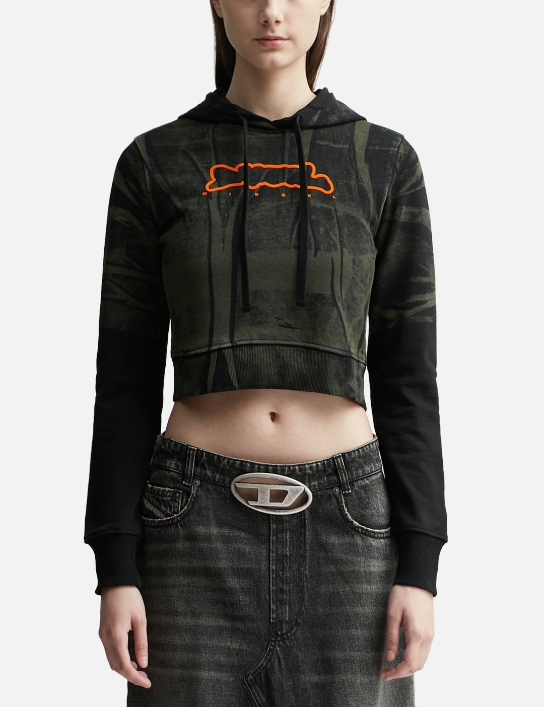 - Diesel - F-slimmy-hood T-shirt With Crease-effect Print - Made of light cotton jersey - Slim fit - Drawstring hood - Ribbed cuffs and hem - Marbled artwork on the front - Flocked diesel outline logos - Cropped hem - Color: Green/ Black - Color: Green/ Black - Material: 100% Cotton, Rib 97% Cotton 3% Elastane-Spandex - See more Hoodies and Clothing SIZING - Model wears size XS - Model measures: Height 177cm, Chest 32”/81cm, Waist 24’’/61cm, Hip 35’’/88.9cm