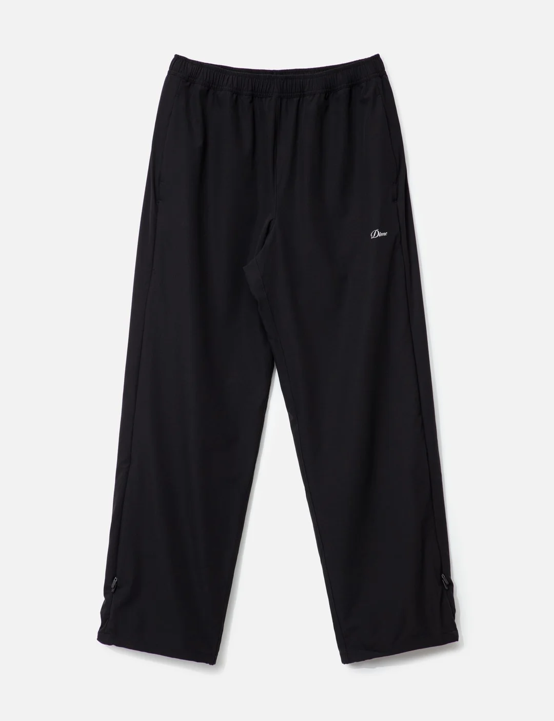 - Dime - Athletic Zip Pants - Made with nylon and spandex - Elastic waistband with adjustable drawstring - Two side pockets - Reflective brand logo on left thigh - Breathable two-way zipper mesh lining on sides - Adjustable drawcord on hem - One welt pocket on back right - Color: Black - Material: 90% Nylon, 10% Spandex; Lining: 100% Polyester - See more Pants and Clothing - Model wears size M - Model measures: Height 186cm, Chest 34”/86cm, Waist 28”/71cm, Hip 36”/91cm - Vendor Code: DIMEFA2517BLK