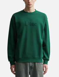 - Dime - Classic Logo Crewneck Sweater - Crewneck - Textured logo at front - Ribbed cuffs and hem - Color: Rainforest - Material: 75% Cotton 25% Polyester - See more Sweatshirts and Clothing SIZING - Model wears size M - Model measures: Height 184cm, Chest 29"/73cm, Waist 24"/62cm, Hip 35"/90cm
