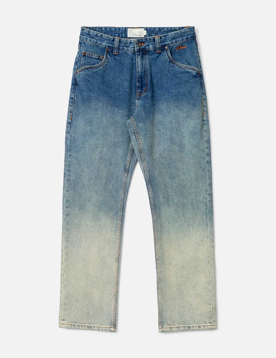 - Dime - Straight Denim Pants - Made with pre-shrunk cotton - Straight leg - Zip fly - Five pockets - Embroidered brand logo on front pocket - Embroidered patch on back waistband - Wavy patch pockets at back - Color: Dipped Sandblasted Indigo - Material: 100% Cotton - See more Jeans and Clothing - Model wears size 32 - Model measures: Height 186cm, Chest 34”/86cm, Waist 28”/71cm, Hip 36”/91cm - Vendor Code: DIMEFA2516IND
