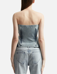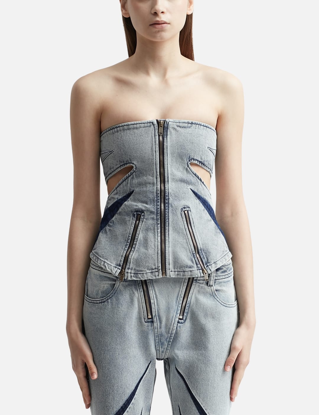 - Dion Lee - Darted Denim Corset - Mid-wash denim - Strapless - Cut out details on two sides - Front zip fastening - Color: Indigo - Material: 100% Cotton - See more Tops and Clothing SIZING - Model wears size 6 - Model measures: Height 176cm, Chest 32”/81cm, Waist 23”/59cm,Hip 35”/90cm