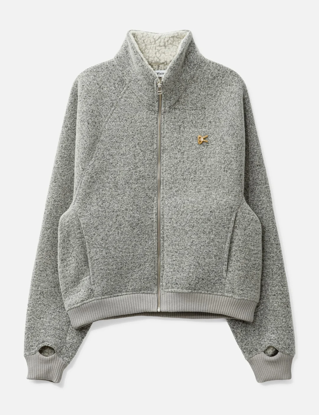 - District Vision - Reverse High Loft Fleece - Made from a premium Italian wool-blend fleece - 335 gsm - High-pile interior - Ergonomic handwarmer pockets - Polished silver YKK zipper closure - Wooden chest badge secured with 400 tex sashiko stitching - Ribbed cuffs and waistband - Fleece lining - Color: Melange Grey - Material: 65% Wool, 35% Polyester - See more Jackets and Clothing - Model wears size M - Model measures: Height 186cm, Chest 34”/86cm, Waist 28”/71cm, Hip 36”/91cm - Vendor Code: DV0087-A
