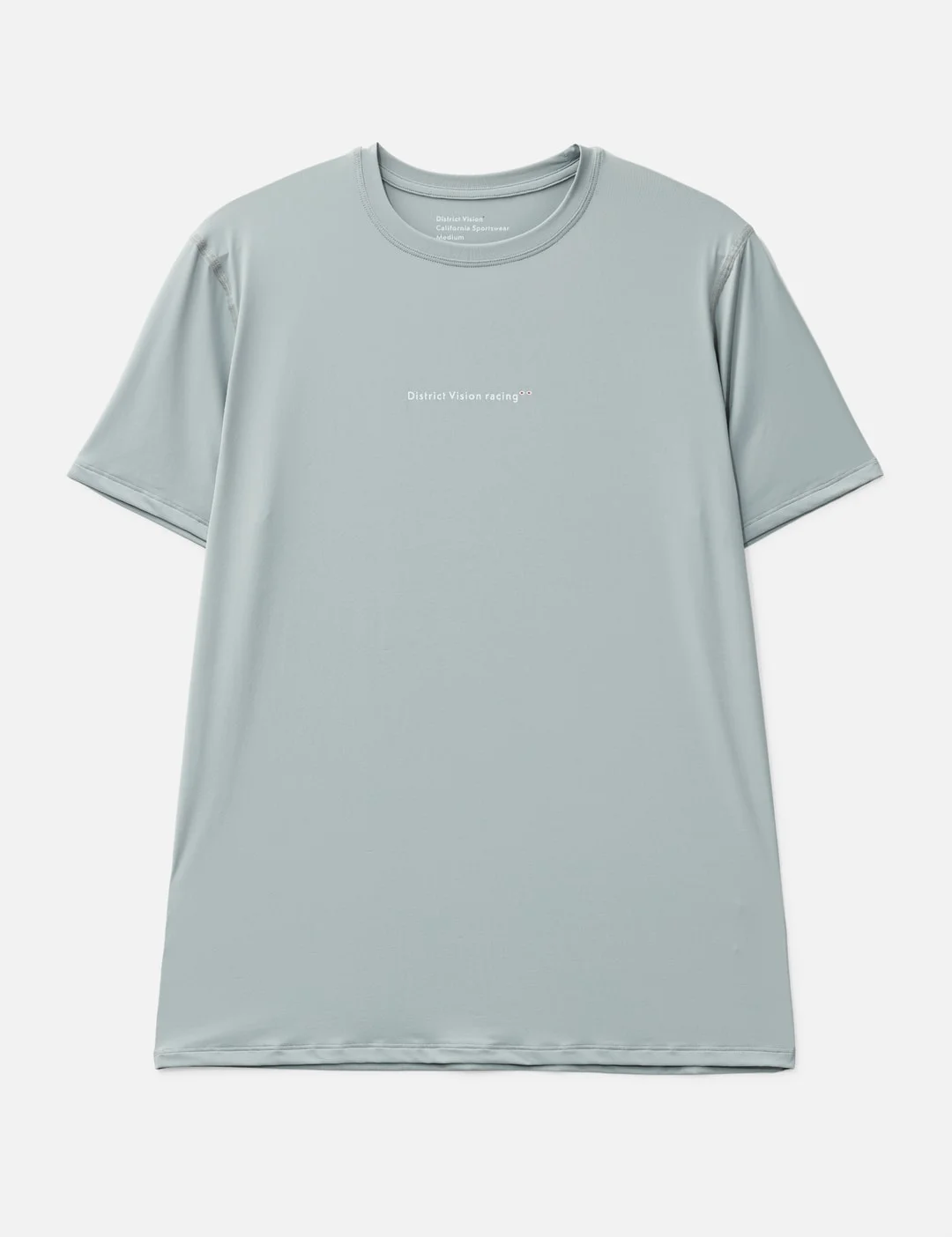 - District Vision - Ultralight Aloe Short Sleeve Tee - Made of 100 gsm lightweight nylon - Integrated with aloe vera molecules - Round neck - Short sleeve - Laser-cut peace sign on back for ventilation - Color: Granite - Material: 82% Nylon, 18% Elastane - See more SS T-Shirts, T-Shirts and Clothing - Model wears size M - Model measures: Height 186cm, Chest 34”/86cm, Waist 28”/71cm, Hip 36”/91cm - Vendor Code: DV0018-B