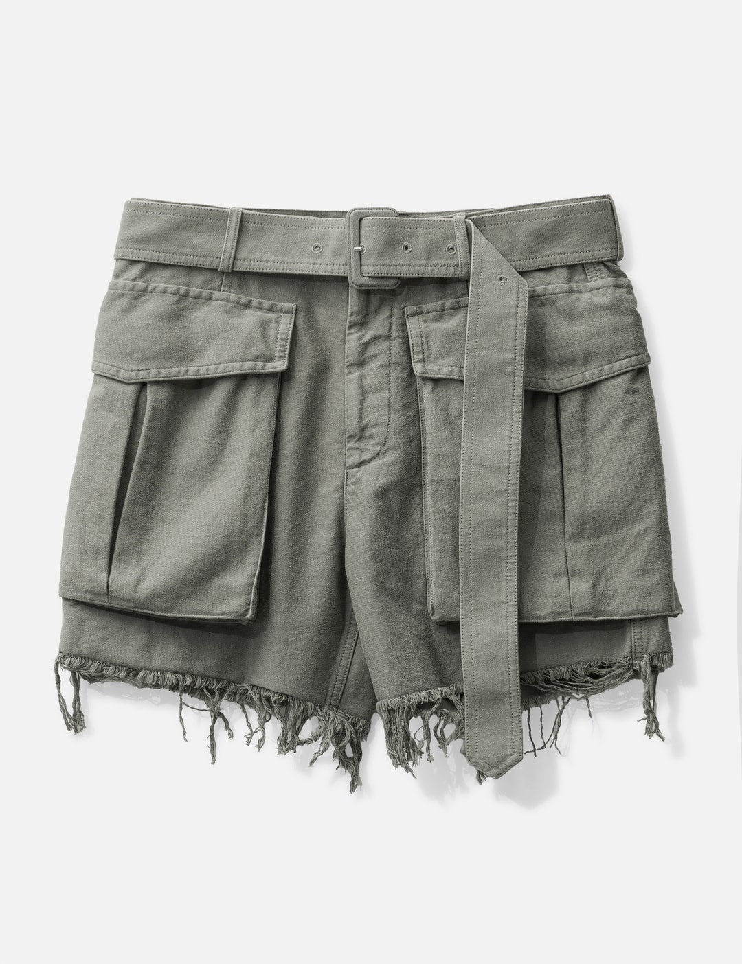 - Dries Van Noten - Belted cotton shorts - Regular fit - Garment dyed - Belted - Mid-rise - Front bellow cargo pockets - Cropped raw cut leg - Color: Gray - Material: 100% Cotton - See more Shorts and Clothing SIZING - Model wears size 48 - Model measures: Height 186cm, Chest 34”/86cm, Waist 28”/71cm, Hip 36”/91cm