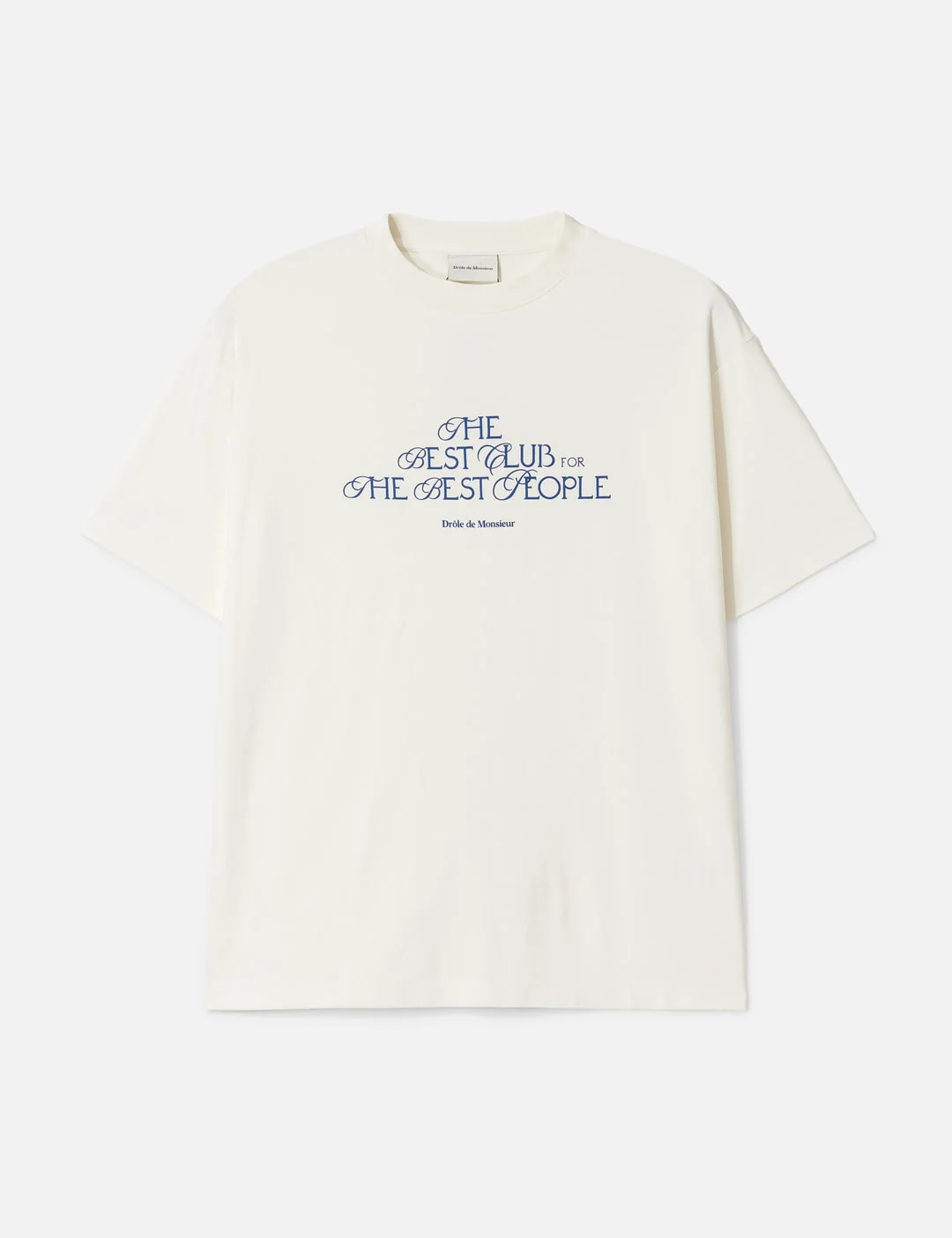 - Drole de Monsieur - Le T-Shirt "The Best Club" - Relaxed Fit - Made of 240 GSM Interlock fabric - Ribbed crewneck - Short sleeve - 'The Best Club' print on the front and back - Made in Portugal - Color: Off White - Material: 100% Cotton - See more SS T-Shirts, T-Shirts and Clothing - Model wears size M - Model measures: Height 186cm, Chest 34”/86cm, Waist 28”/71cm, Hip 36”/91cm - Vendor Code: I-TS273-CO002-OW