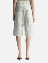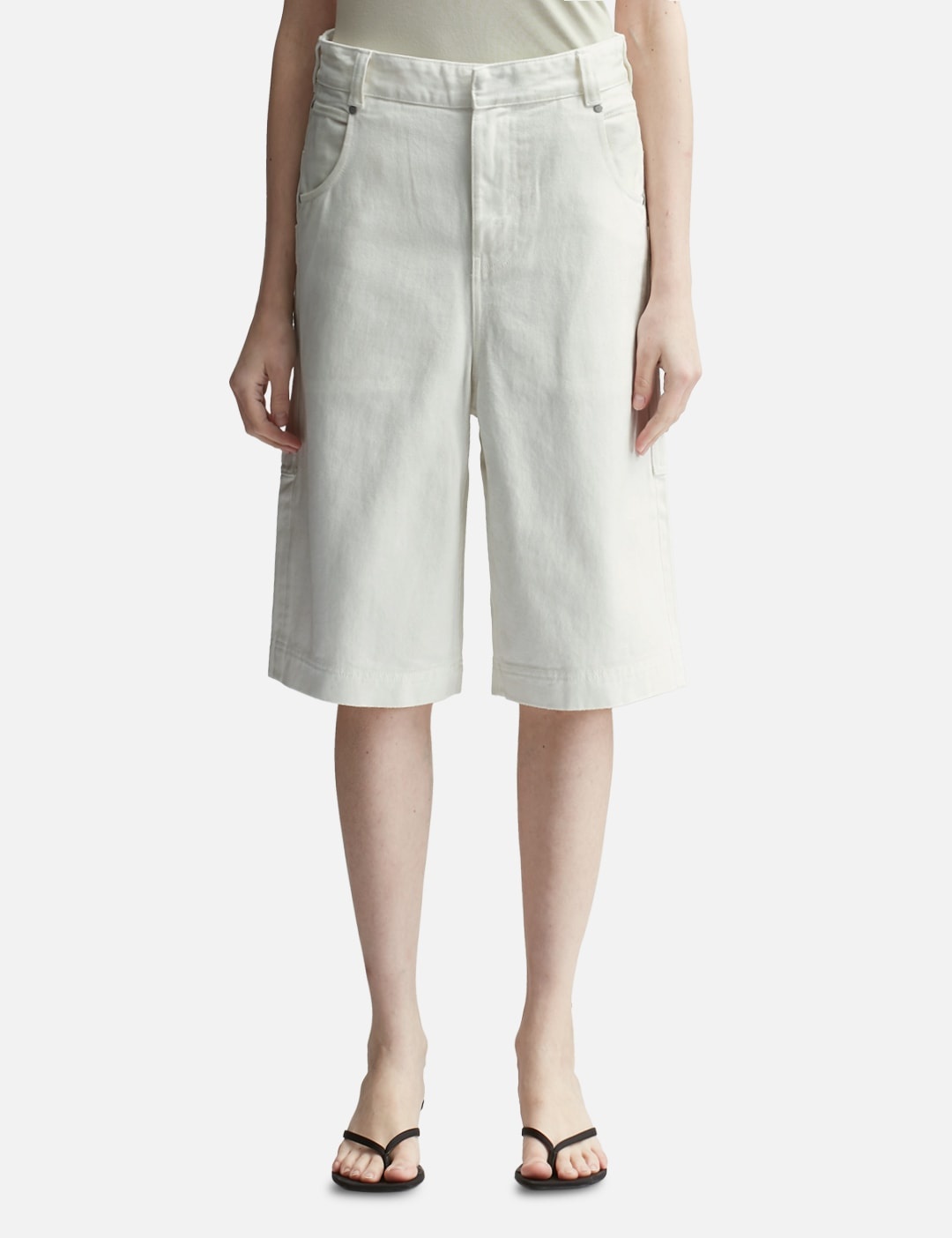 - Entire Studios - D-Shorts - 13.75oz Japanese selvedge denim - 3/4 length - Belt loops with logo patch - Ykk metal zip and hidden button closure - Waist and large low hip back pockets - Color: Bone - Material: 100% Cotton Japanese Selvedge Denim - See more Shorts and Clothing SIZING - Model wears size M - Model measures: Height 177cm, Chest 32”/81cm, Waist 23.5”/59.7cm, Hip 33’’/83.8cm