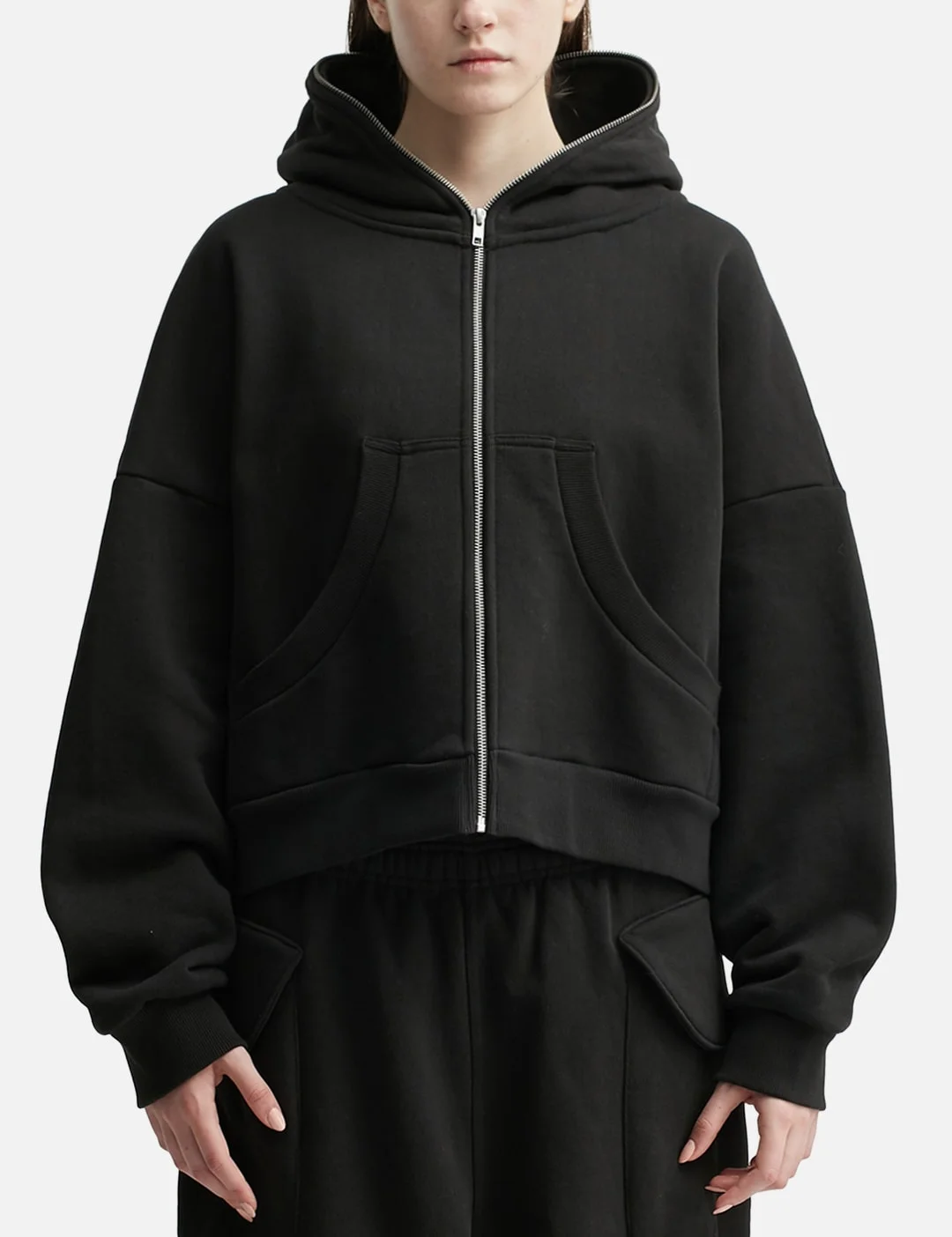 - Entire Studios - Eternal Zip - Made of 510gsm organic cotton brushed back fleece - Garment dyed and enzyme washed - YKK metal front zip to top of hood - Front pockets - Ribbed cuffs and hem - Due to the wash process, colors will vary with each piece - Color: Soot - Material: 100% Organic Cotton - See more Hoodies and Clothing - Model wears size XS - Model measures: Height 178cm, Chest 30’’/76.2cm, Waist 23”’/58.4cm, Hip 34.5’’/87.6cm - Vendor Code: ES2202SO
