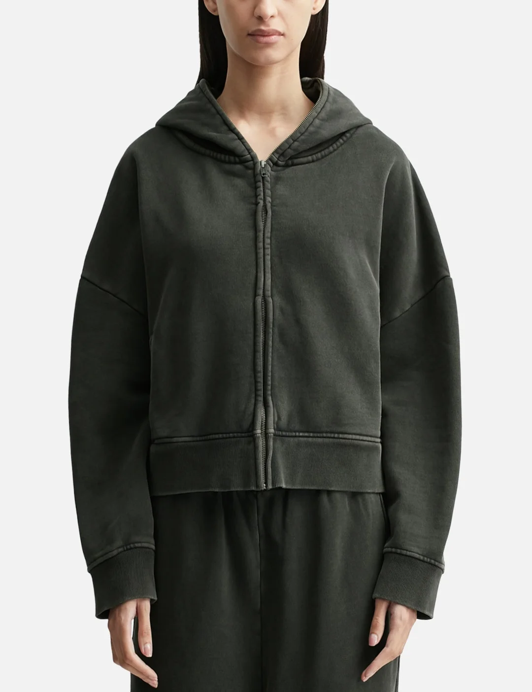 - Entire Studios - Eternal Zip - Made of 510gsm organic cotton brushed back fleece - Garment-dyed - Enzyme-washed - YKK front zip to top of the hood - Front pockets - Ribbed cuffs and hem - Colors may vary due to the wash process - Color: Washed Black - Material: 100% Cotton - See more Hoodies and Clothing - Model wearing size XS - Model measures: Height 179cm, Chest 32’’/ 81.3cm, Waist 24.5”’/62cm, Hip 34.5’’/88cm - Vendor Code: UNU-25-1003-WB