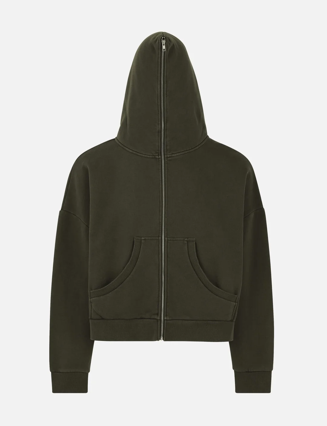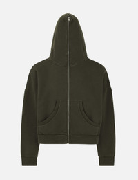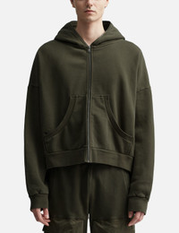- Entire Studios - Eternal Zip - Full-length zipper - Brushed-back fleece fabric - Made with organic cotton - Enzyme washed - Due to the wash process colors will vary with each piece - Front pockets - Ribbed cuffs and hem - Color: Military - Material: 100% Cotton - See more Hoodies and Clothing SIZING - Model wears size M - Model measures: Height 190cm, Chest 36"/94cm, Waist 29”/74cm, Hip 37"/94cm