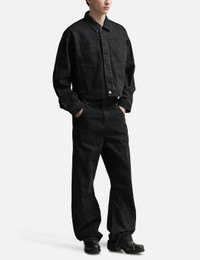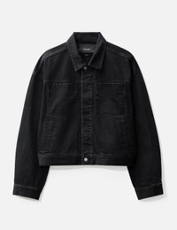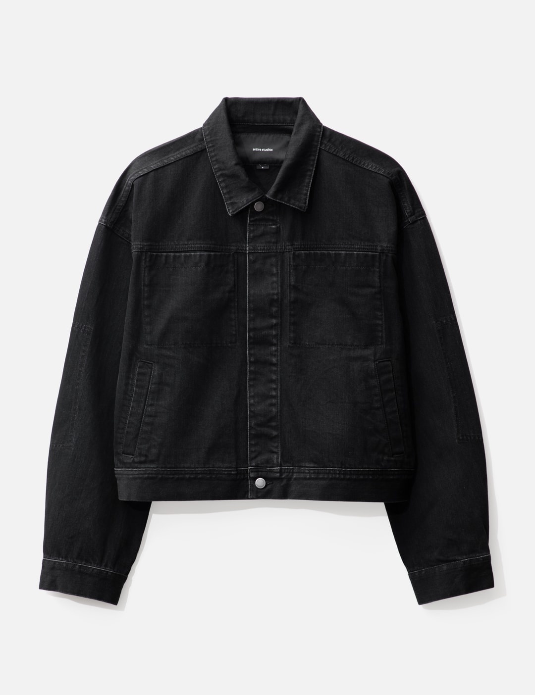 - Entire Studios - Gem Denim Jacket - Made from Japanese selvage denim - Boxy fit - 13.75 oz denim - Chest and waist pockets - Front metal YKK zip closure - Hidden metal snap dome closure - Color: Magnetite - Material: 100% Cotton - See more Jackets and Clothing SIZING - Model wears size M - Model measures: Height 187cm, Chest 36”/91cm, Waist 28”/72cm, Hip 36”/91cm