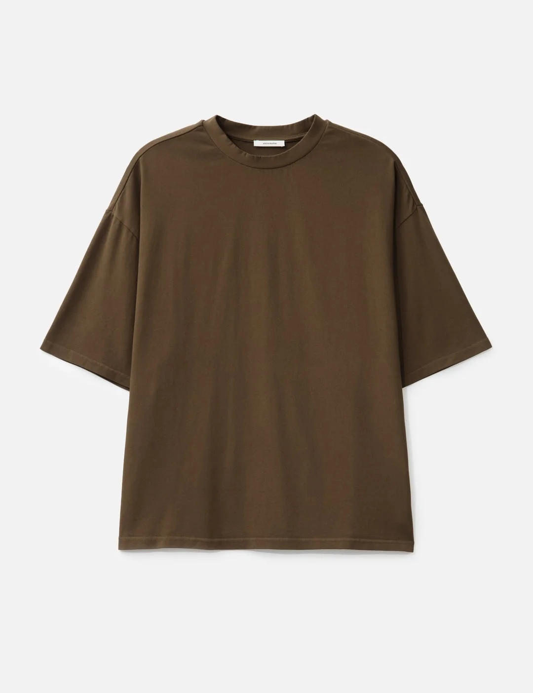 - Entire Studios - Heavy Boxy Tee Brunette - Unisex - Made of 310gsm organic cotton - Oversized fit - Ribbed crewneck - Dropped shoulder - Short sleeves - Color: Brunette - Material: 100% Cotton - See more SS T-Shirts, T-Shirts and Clothing - Model wears size M - Model measures: Height 186cm, Chest 34”/86cm, Waist 28”/71cm, Hip 36”/91cm - Vendor Code: UNU-25-2033-BT